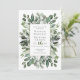 Um convite para casamento verde escuro e verde de verão com elementos botânicos e uma fonte clássica. A folhagem luxuosa borda perfeitamente o detalhe falsa do ouro, escolha de uma parte traseira com padrão ou colorida. Consulte a suíte de correspondência de cheios aqui https://bit.ly/3kpPErk.