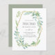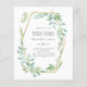 Bonito cor d'água verde, folhas de sábio com um quadro geométrico dourado neste item de casamento moderno. Parte de uma coleção maior de casamento orçamentária que inclui convites, salvar a data, rsvp com opções de menu, etiquetas para favores e presentes e envelopes, convites para chás de panela e muito mais.