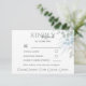 Este é um design rústico minimalista encantador com folhas de eucalipto em azul poeira e verde sálvia e outras folhagens em um fundo branco. Opções completas de menu para convidados, incluindo opção vegana.