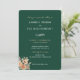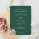 Convite verde escuro para casamentos, com flores de damascos e folhagem de jardim. Um design botânico contemporâneo simples, mas elegante, inspirado pelo estilo boho vintage, com monograma no verso.
