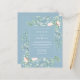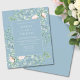 Convite de Noivado Folhagem Verde Simples em Azul Desbotado