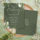 Este convite de casamento com folhas de verde botânico verde oliva econômico e elegante pode ser personalizado com suas informações em tipografia sofisticada com suas iniciais monogramadas no verso. Projetado por Thisisnotme©