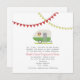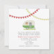 Um convite do casamento que caracteriza uma ilustração de um reboque verde do vintage estacionou na grama. O reboque tem uma caixa de janela enchida com as margaridas e os susans de olhos pretos. Estamenha amarela e vermelha na parte superior. Personalize o texto com detalhes de sua ocasião. Artigos de harmonização Look for no Paperie de Jill.
