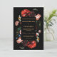 Convite De Casamento, Floral Vermelho Escuro. O texto colorido de cobre é totalmente personalizável. Fundo da ventoinha. O fundo vermelho escuro na parte traseira da placa pode ser alterado. Nossa coleção de suítes de casamento ALEXANDRIA está cheia de flores em fundo preto e vermelho, tudo usando um texto de cor de cobre. Moody, elegante e moderno.