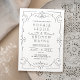 Design de moldura de ornamentado de moldura de de elegância vítrea em preto e branco. Cor damasco com design monograma nas costas, moderna, elegante e elegante, perfeita para o casamento vintage, casamento de arte deco durante todo o ano. Cor de fundo editável para corresponder às cores do tema do casamento. Veja todas as peças correspondentes nesta coleção do "Dourado casamento Clássico Moderno" abaixo.