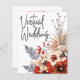 Uma alternativa de preço acessível menor que 4,5” x 5,6”. Disponível em papel cartão SEMI-BRILHANTE de 110 lb, que é a opção padrão (mais grosso para convites), OU em papel STOCK MAIS FINO de 80 lb com acabamento SEDA (ideal para inclusões). Os envelopes são opcionais e são ligeiramente maiores que o tamanho do cartão. Com uma data festiva de inverno em mente para o seu casamento virtual, flores vermelhas e creme, folhagens e frutas decoram o lado direito, e um buquê coordenado menor está no verso. Um script informal com Casamento Virtual é grande no lado esquerdo da frente, e os detalhes estão no verso, que você pode personalizar facilmente para o seu.