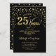 Convite de Celebração de 25º Aniversário Gold Black Design elegante com falso brilho dourado. Apresenta fonte manuscrita e diamantes de confete. Parabéns pelos 25 Anos! Pode ser personalizado para mostrar qualquer ano de casamento. Mensagem para mim se precisar de mais personalização.