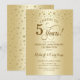 Design elegante com falso papel alumínio dourado brilhante. Caracteriza fonte manuscrita e diamantes de confete. Saúde por 5 Anos! Pode ser personalizado para mostrar qualquer ano de casamento. Mensagem para mim se precisar de mais personalização.