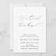 Este elegante anúncio de casamento também serve como convite para a recepção de casamento. Este convite de recepção duplo lado apresenta "nós amarrámos o nó" em letras de folha de ouro falso com texto anunciando seu casamento e convidando os convidados para a recepção de casamento. Personalize com sua foto no verso.