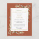 Um convite de funeral personalizado e elegante de celebração da vida com folhagem botânica em aquarela sobre um fundo terracota. Criado por Thisisnotme©