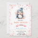 Convite de chá de aniversário para menina de pinguim de inverno