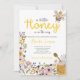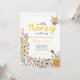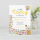 Este convite de Chá de Bebê Abelhinha a caminho apresenta florais suaves, abelhas zumbindo e uma ilustração de jarra de mel com letra amarela quente. Perfeito para futuras mães, este convite de Chá de Bebê Abelhinha cria um tema doce e alegre para uma celebração de jardim ou primavera.