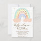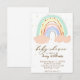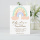 Personalize convite de chá de bebê arco-íris e estrelas com os detalhes do seu chá de bebê de forma fácil e rápida, basta pressionar o botão personalizar para reorganizar e formatar o estilo e a colocação do texto. Este convite caprichoso apresenta arco-íris pintado à mão com estrelas em cores pastéis. Perfeito para dar as boas-vindas ao seu novo bebê