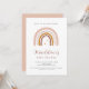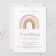 Celebre um chá de bebê fofo com este convite de arco-íris neutro em gênero, apresentando uma bela ilustração de aquarela em tons terrosos em um fundo branco limpo. Ideal para chás de bebê elegantes em casa, chá das cinco, festas no jardim ou qualquer celebração de bebê - homenageando a futura mãe com estilo sofisticado.
