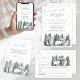 Cartões de lugar para chá de bebê neutro em tema de floresta com animais da floresta, árvores de pinheiro à noite com lua e estrelas, aquarela sobre a lua para a aventura começar