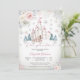 Celebre um momento mágico com este convite de chá de bebê caprichoso de conto de fadas, apresentando um castelo pastel, carruagem encantada e delicados detalhes florais. Perfeito para festas temáticas de princesa, este design elegante combina charme de fantasia com estilo moderno para criar um souvenir memorável. Personalize com os detalhes do seu evento e encante os convidados com uma celebração sonhadora inspirada em livro de histórias.