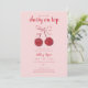Ilumine o seu chá de bebê com esta ilustração de cereja. Totalmente editável para o nome da futura mamãe, data e local—estilo doce feito simples!