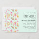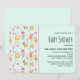 Convites de chá de bebê com um padrão caprichoso com uma coleção de brinquedos e animais infantis encantadores.
