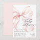 Convite de chá de bebê com tema de laço com um design de laço rosa elegante e design minimalista moderno e escrita elegante