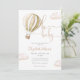 Este encantador convite de chá de bebê apresenta um fofo balão de ar quente e nuvens, juntamente com uma elegante tipografia de roteiro. Com o código QR do seu registro e foto especial no verso. Criado por Thisisnotme©