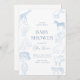 convite de chá de bebê fofo, temático azul, selvagem, africano