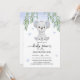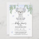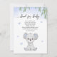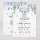 Convite de chá de bebê decorado com uma ilustração de coala fofo e folhas de eucalipto.
