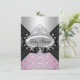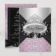Convite de Chá de Bebê Rosa. É uma Menina! Lindo design de diamante e coroa cintilante & laço. Por favor, note: Todas as imagens planas! Elas não têm laços ou jóias reais!