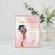 Convite de chá de bebê da princesa preta com adorável bebê princesa com cabelo afro fofo com coroa de diamantes e capa em um lindo fundo rosa e dourado. Este cartão postal de convite de chá de bebê da princesa é facilmente personalizado com os detalhes do seu evento.