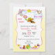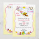 Este convite de chá de bebê adorável apresenta uma pequena abelha fofa cercada por flores suaves e brinquedos divertidos, criando um design doce e alegre para celebrar uma menina. Os delicados acentos florais e detalhes caprichosos tornam-no perfeito para um chá de bebê com tema de primavera ou jardim. Personalize o texto com os detalhes do seu evento para criar um convite encantador para amigos e familiares.