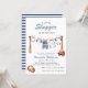 Um 'pequeno brigão' está a caminho! Celebre sua chegada com este convite de chá de bebê fofo com tema de beisebol. O design apresenta roupas de bebê fofas penduradas em um varal entre tacos de beisebol, com um capacete e uma luva de beisebol minúsculos adicionando charme. As listras clássicas em azul-marinho e branco no verso complementam o tema esportivo, criando um anúncio coeso e memorável para seu evento especial. Este convite é perfeito para pais que amam beisebol ou que estão procurando uma maneira única e divertida de celebrar o chá de bebê.
