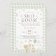 Convite de Chá de Bebê de Ganso Verde. Convite de Ganso Bobalhão à Solta com Xadrez Neutro em Gênero. Modelo de Festa de Gansos da Primavera em Sage para Impressão. G3
