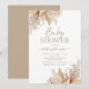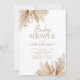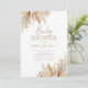 Convites rústicos de chá de bebê boho com um fundo branco simples, folhas secas de deserto aquarelado, grama de pampas e um modelo de chá de bebê elegante que é fácil de personalizar.