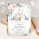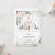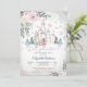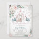 Entre num conto de fadas mágico com este encantador convite de chá de bebê de inverno. Com um castelo caprichoso com telhados cor-de-rosa, flocos de neve delicados e uma carruagem encantadora, este design captura o encanto de uma celebração de um livro de histórias. Acentos florais elegantes com rosas e folhagens adicionam um toque de romance, enquanto o fundo nevado realça a atmosfera sonhadora. Perfeito para futuros pais que amam temas de contos de fadas, este convite prepara o cenário para um encontro memorável e mágico.
