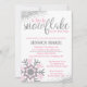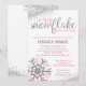 Nosso convite de chá de bebê de inverno é perfeito para qualquer tema de chá de bebê com flocos de neve rosa e prata.