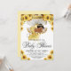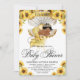 Convite de chá de bebê de menina africana com girassol com adorável sereia bebê africana e concha de molusco em um lindo girassol e fundo de pontos amarelos. Este convite de chá de bebê de girassol fofo é facilmente personalizado para o seu evento, basta adicionar os detalhes do evento.