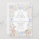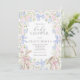Este convite de chá de bebê elegante e sofisticado apresenta belíssimas flores silvestres em tons de rosa e azul, pintadas à mão com técnica de aquarela, dispostas em um lindo buquê, e um elegante texto em caligrafia perfeito para chás de bebê da primavera, verão ou outono.