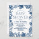 Convite de chá de bebê divertido e caprichoso com corais azuis. Este convite será perfeito para chá de bebê de verão e com tema náutico e chá de bebê "É um menino". Outras cores estão disponíveis.