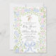 Convite de chá de bebê em gingham rosa Grandmillennial, Chá de bebê menina, Chá de bebê sulista sofisticado, Chá de bebê de confeitos, Convite temático de laço azul