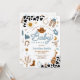 Prepare-se para uma celebração divertida com este convite de chá de bebê temático western, perfeito para homenagear uma mamãe especial. Com chapéus de cowboy, botas, laços, cactos e detalhes rústicos de impressão de vaca, este design captura o charme do Velho Oeste. O layout elegante e os detalhes divertidos tornam-no ideal para encontros inspirados no campo, chás de bebê temáticos de rodeio ou festas rústicas no celeiro. Personalize com os detalhes do seu evento para criar um souvenir único que os convidados vão adorar.