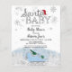 Adoráveis convites de chá de bebê com tema de inverno, caligrafia e flocos de neve. Fácil de personalizar com seus detalhes. Verifique a coleção para encontrar itens correspondentes como cartões de inclusão.
