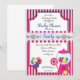 Convite de chá de bebê Doces e Guloseimas com fundo listrado de doces máquina de chiclete e guloseimas , um convite de chá de bebê animado e fresco