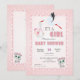 Uma encantadora coleção de convites de chá de bebê para meninas com uma cegonha engraçada. Esta linda coleção foi projetada especialmente para bebês meninas. Com tons rosa, ilustrações modernas e designs limpos. Perfeito para celebrar a chegada de um bebê com estilo e simplicidade. Perfeito para pais estilosos que amam design contemporâneo e elegância simples.