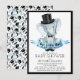 Convites de chá de bebê little man com adorável elefante bebê dapper com chapéu preto, gravata borboleta e bengala em um fundo preto e branco com fundo little man nas costas. Esses convites de chá de bebê little man são facilmente personalizados para o seu evento, basta adicionar os detalhes do evento. Você também pode alterar a cor do fundo.