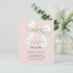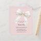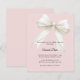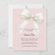 Celebre a chegada iminente de um pequeno com este convite de chá de bebê elegante em rosa pó, apresentando um lindo laço decorativo com detalhes delicados de pérolas. O fundo suave em rosa pó cria um visual quente, feminino e atemporal, perfeito para uma celebração de chá de bebê sofisticada.