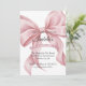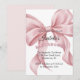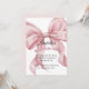 Celebre a chegada doce da sua bebê menina com este convite de chá de bebê elegante com laço rosa em aquarela no estilo coquette. Com um delicado laço rosa cor-de-rosa pintado à mão, este design captura perfeitamente a estética popular coquette e grandmillennial. Este convite chique e minimalista é ideal para uma festa sofisticada no jardim, uma celebração clássica em uma sala de chá ou uma reunião aconchegante em casa. Todos os campos de texto são totalmente personalizáveis, permitindo que você adicione facilmente o nome da homenageada, data, hora, local e detalhes de RSVP. Impresso em papel cartão de alta qualidade com acabamento suave, é um souvenir atemporal para o seu dia especial.