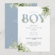Convite de Chá de Bebê Menino Azul Poaento Folhage