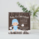 Convite de chá de bebê 'Bebê, está frio lá fora' com adorável menino usando um chapéu de neve azul bebê em um fundo rústico de madeira e flocos de neve. Esses convites de chá de bebê de flocos de neve de inverno para meninos são facilmente personalizados para o seu evento, basta adicionar seus detalhes.