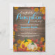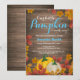 Convite de chá de bebê menino azul outono rústico. Convite de chá de bebê outono. Fundo de madeira rústica. País vintage retrô. Flores e folhas florais de abóbora aquarela. Azul e laranja. Para personalização adicional, clique no botão "Personalize" e use nossa ferramenta de design para modificar este modelo.