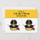 Convites criativos de chá de bebê com tema de futebol com gêmeos meninos e linha divertida.