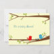 Esses passarinhos adoráveis estão celebrando a nova vida a caminho! Muito espaço para detalhes da festa neste convite de dois lados. Fácil de personalizar para atender às suas necessidades. Altere o tamanho do texto, estilo e cor de fundo. Arte original por Night Owl's Menagerie, 2011.